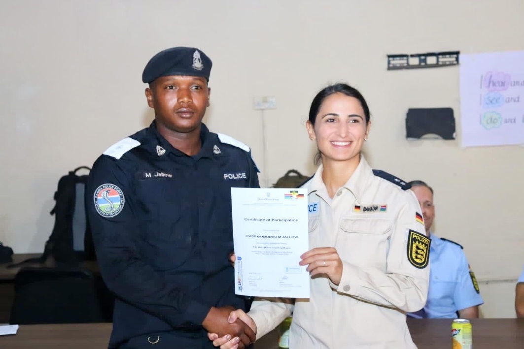 The Gambia Police Force (GPF) recently completed intensive training on self-defense techniques led by a team of trainers from the German Police Support Team. Held at the Police Intervention Unit (PIU), the training covered crucial areas such as arresting methods and retrieving suspects from a vehicle. The training is part of ongoing efforts to improve the operational efficiency of GPF personnel.