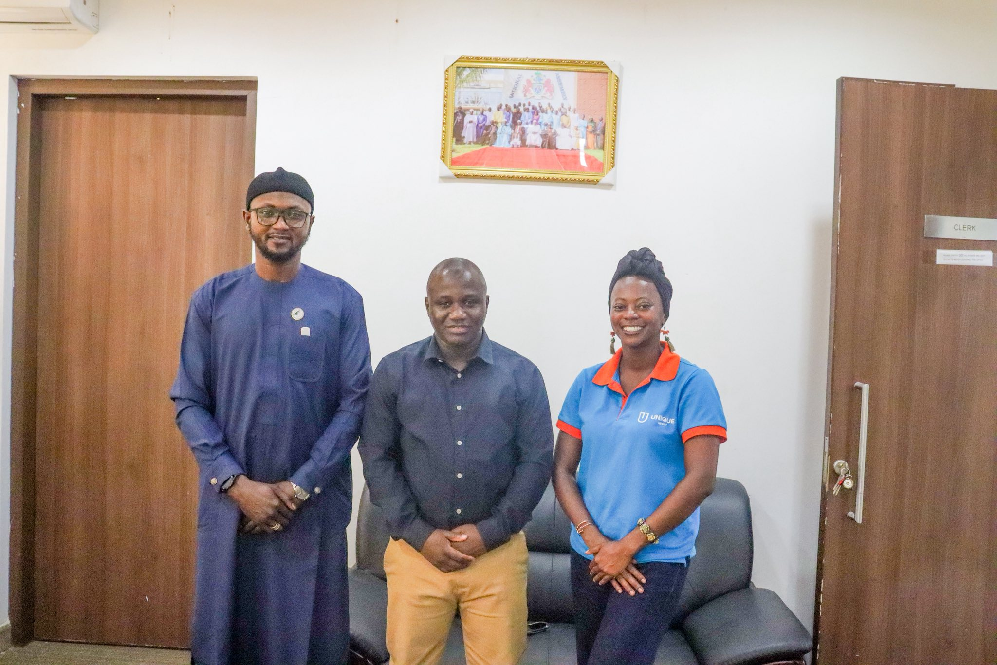 The Clerk of the National Assembly, Mr. Kalipha MM Mbye, held a meeting today with a delegation from Unique Solutions Co. Ltd, led by Chief Operating Officer Mr. Balla Colley. The purpose of this courtesy visit was to explore potential partnership opportunities.