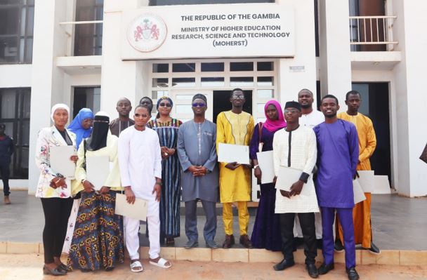 On May 16, 2025, the Honourable Minister of Higher Education, Research, Science and Technology, Professor Pierre Gomez, presented MoHERST Scholarship Letters of Commitment to ten graduates from the University of The Gambia (UTG) in recognition of their academic achievements.