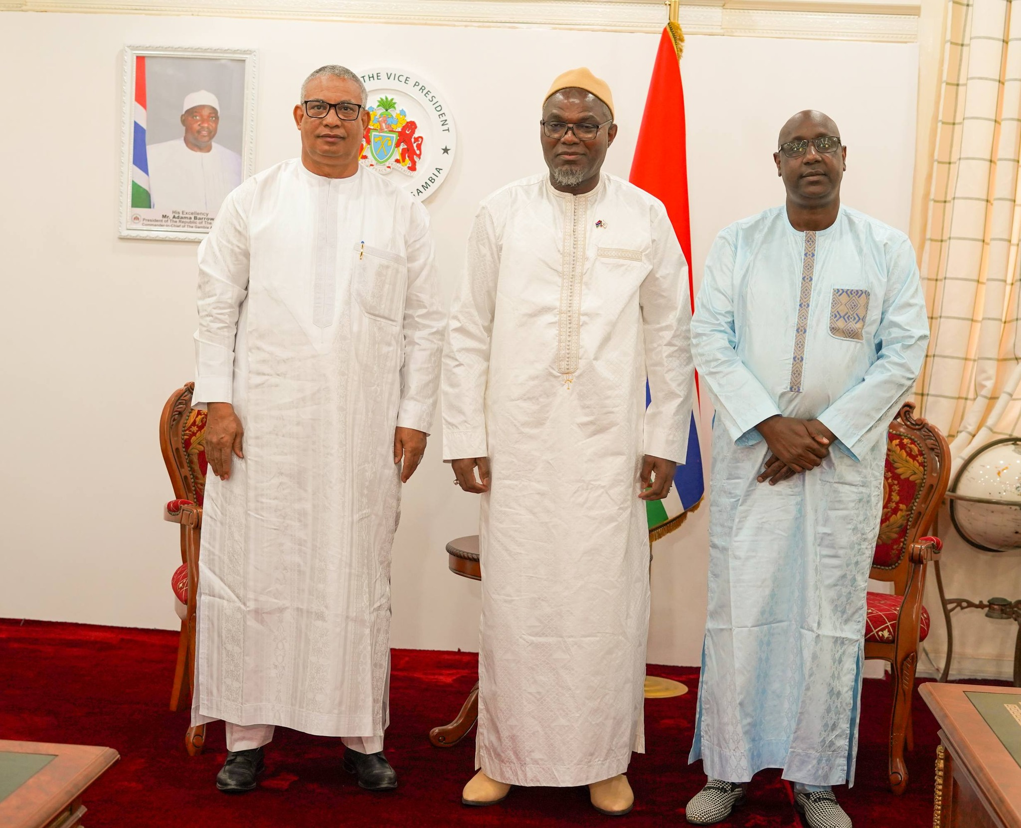The Vice President of The Gambia, Mohammed B.S. Jallow, met with Professor Herbert Robinson and Dr. Abdoulaye Mohammadou to discuss initiatives in evidence-based policymaking and sustainable development.